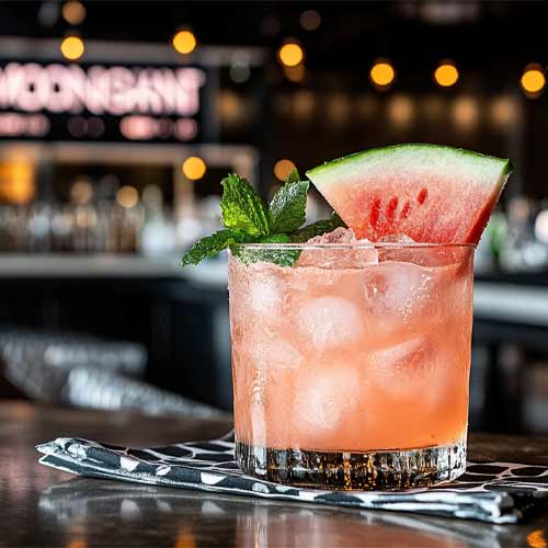 J35 Watermelon or J35 Peach Moonshine with mint, lime, simple syrup, and soda water.